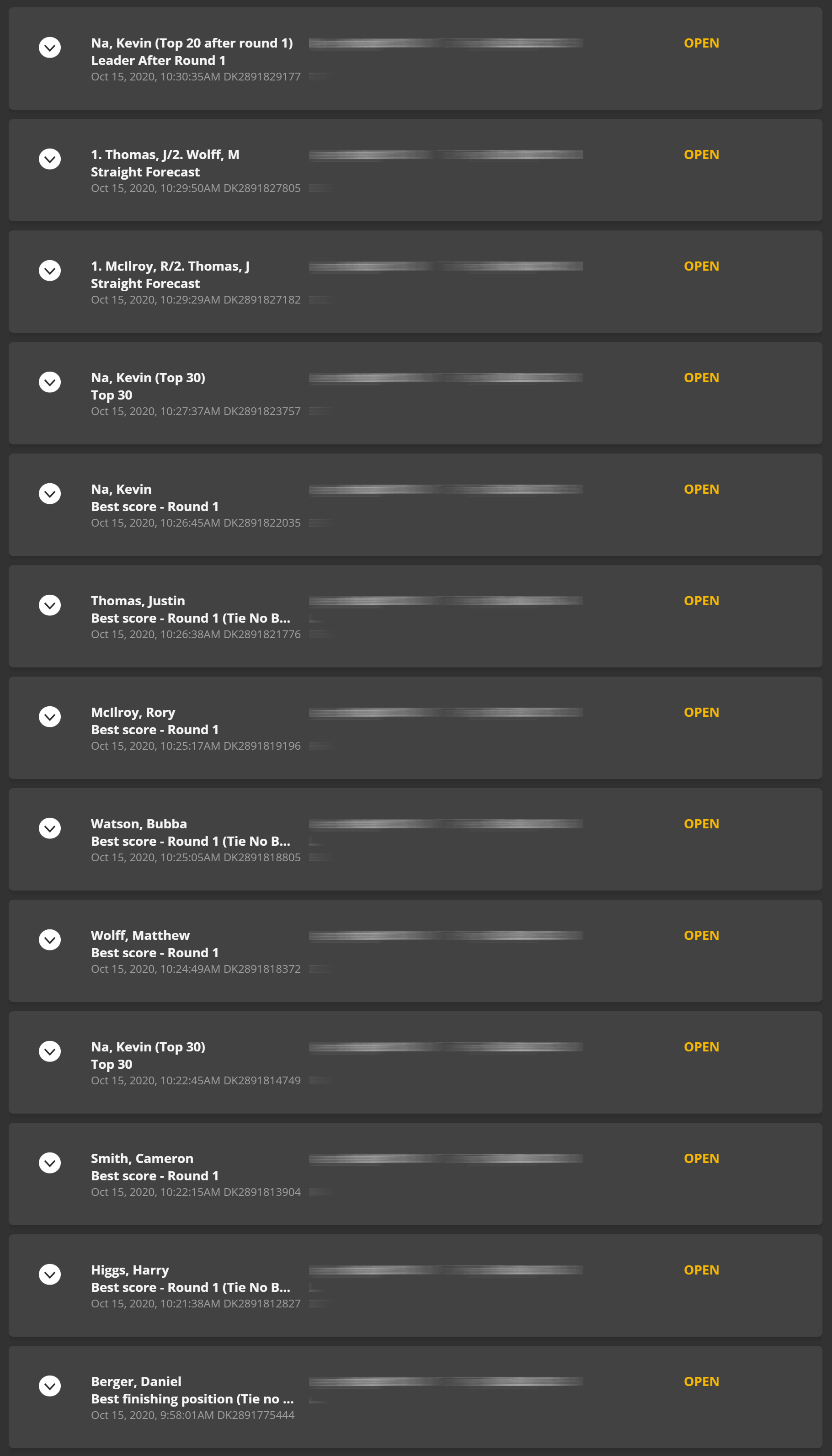 - Top 20 after round 1: Kevin Na (+225)