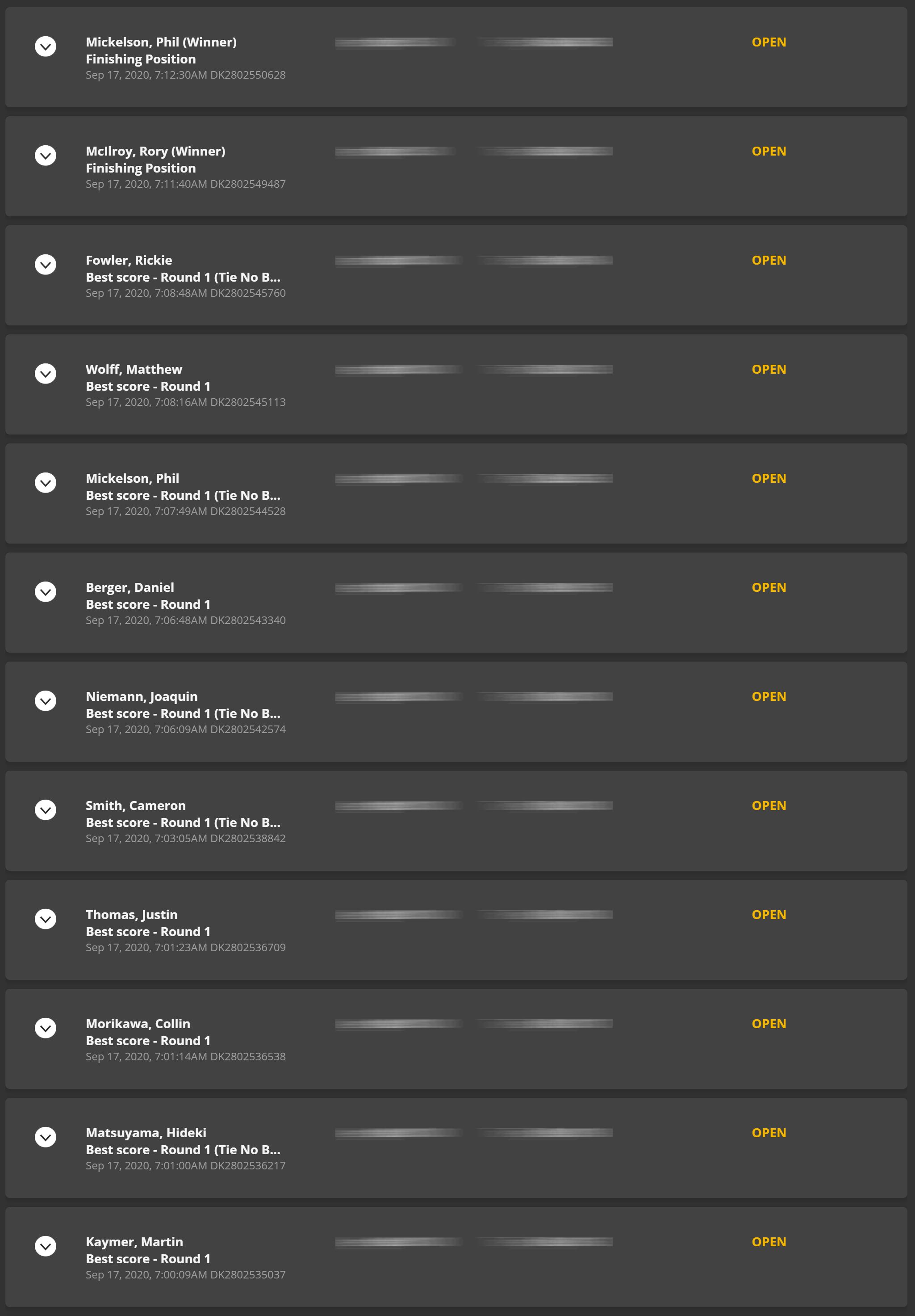 The 1st of 6 majors in the 2020-21 season kicked off today at Winged Foot Golf Club in Mamaroneck, NY. What a beautiful, but challenging course where you don't see many under par rounds. Couldn't ask for better golf weather, either! Anyways, enough about the course. Here are my first round picks.